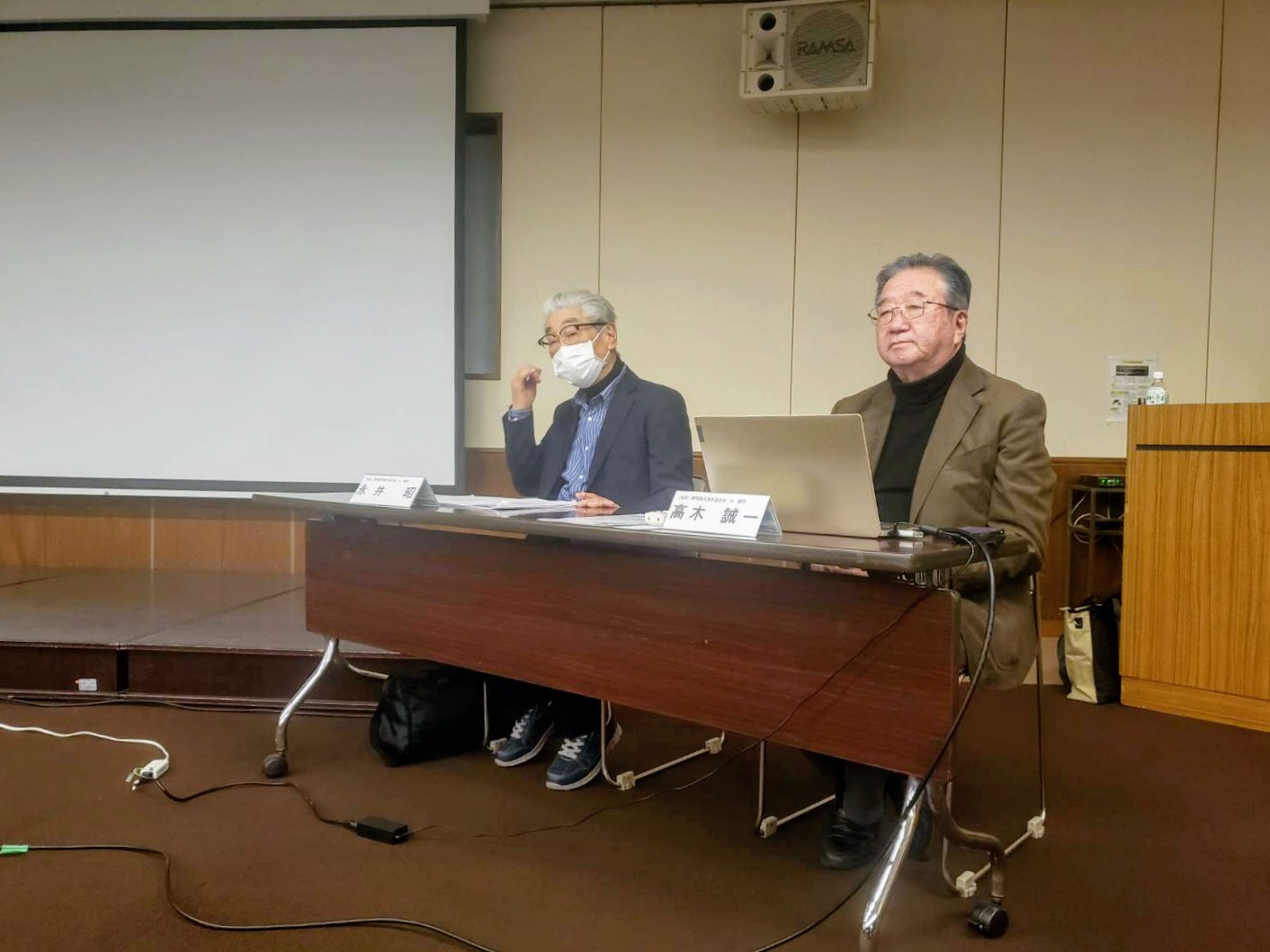 左から、作業所連合会・わ顧問永井昭氏、作業所連合会・わ顧問高木誠一氏